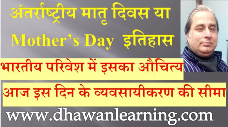 आइए अब कुछ बात भारतीय परिवेश की करें, हमारे देश में कभी भी मातृ दिवस नहीं रहा। उसका कारण स्पष्ट था, हमारे देश की परंपरा में माता-पिता हमारे साथ ही रहते हैं। और हम उनकी पूजा सन्मान के लिए दिन निर्धारित नहीं करते वह हमेशा ही हमारे लिए आदर के योग्य है । जबकि पश्चिम के देशों में, या पाश्चात्य संस्कृति में जैसे ही बच्चा वयस्क होता है, वह माता-पिता से अलग जाकर रहना शुरू कर देता है और अपनी नई दुनिया बसा लेते हैं। मां तो मां ही होती है, चाहे भारत की हो या पश्चिम के किसी देश की । उसकी आंखें अपने बच्चे के लिए अवश्य तरसती हैं । विदेशों में इस परंपरा को और बढ़ा दिया गया, जिससे वह 1 दिन जा करके अपनी माता को और आदर दे सकें ।