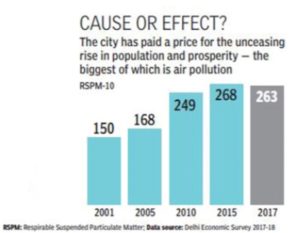 अब तनिक इसके कारणों पर भी दृष्टिपात करते हैं । दिल्ली के आर्थिक सर्वेक्षण 2017 के अनुसार के एक भाग में इसका सबसे बड़ा कारण जनसंख्या का दिल्ली में बढ़ना बताया है । यह एक बहुत बड़ा कारण भी है आप आंकड़ों से देखें तो दिल्ली की आधिकारिक जनसंख्या जो 1.05 करोड़ 2001 में थी आज 1.35 करोड़ के पार हो गयी है । अभी अस्थायी और अवैध लोगों की संख्या लगभग 40 लाख के ऊपर है । अर्थात आज के समय दिल्ली में 1.70 करोड़ से अधिक लोग रहते हैं । यह दिल्ली जो आज लगभग 1 करोड़ लोगों का बोझ सह सकती है उसके ऊपर 70% अतिरिक्त भार है । अर्थात 70 लाख की जनता के लिए रहने की अवैध और अस्थायी व्यवस्था जिसके कारण उनके भोजन बनाने से लेकर कचरा निराकरण की व्यवस्था छोटी पड़ जाती है । दुर्भाग्य यह है की इसमे से अधिकांश का आंकड़ा दिल्ली सरकार के पास नहीं होने के कारण कोई भी सरकार इनके लिए उपयुक्त योजना नहीं बना सकती ।
