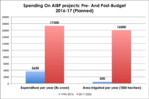 अब रही बात सिंचाई की । 2014 के आंकड़ों के अनुसार देश की कुल 14 करोड़ हेक्टेयर कृषि भूमि में से मात्र 6.5 करोड़ यानि कुल 46% को ही पर्याप्त सिंचाई की व्यवस्था है । इस वर्ष सरकार नें कहा है कि 86,500 करोड़ रुपये अगले पाँच वर्षों में सिंचाई में लगा कर सिंचाई की भूमि को 8 करोड़ हेक्टयर करने का सोच रही है । कागजों मे बनी इस रेपोर्ट के अनुसार अब अभी प्रति वर्ष कुल 5 लाख हेक्टयर भूमि मे ही सिचाई सुधरेगी ।