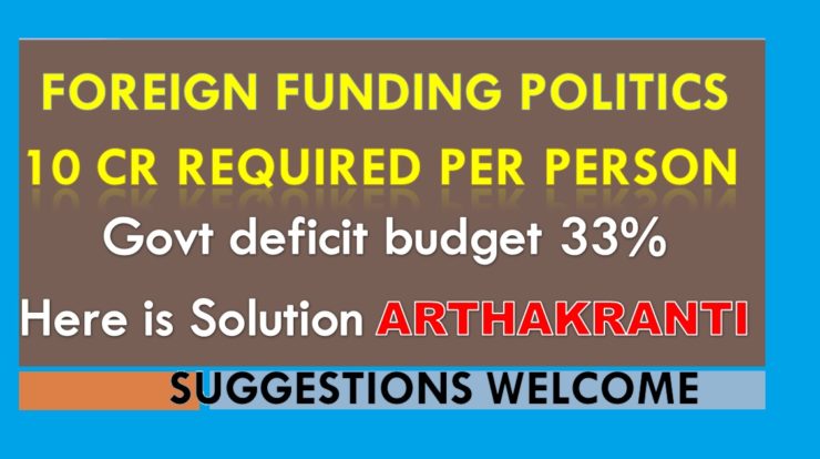 इसका एक मात्र हल है कि सरकार स्वयं चुनाव के लिए पैसा लगाए , बहुत से देशों मे यह प्रावधान है । कितनी अच्छी बात है कि जब सरकार स्वयं धन देगी तो न किसी से लेना पड़ेगा और न ही किसी कि अनुचित लाभ देना होगा। आप सब शायद सहमत हो जाएँ परंतु फिर अगला प्रश्न है कि सरकार के पास पैसा होना भी तो चाहिए । जिस देश की सरकार 20 लाख करोड़ से अधिक के बजट मे 6.5 लाख करोड़ का नया कर्जा या ऋण लेगी तो वह क्या कर सकेगी । आज तक तो वह कम से कम कहने के लिए भारतीय उद्दयोग से पैसा लेती थी और विदेशियों से बहुत कम । इसलिए अपने देशी उद्दायोगपतियों के लिए नयी नयी नीतियाँ बनाती थी । और अब जब विदेशी धन आएगा तो विदेशियों के लिए नई नई नीतियाँ बन जाएंगी ।
