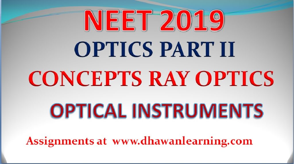 For the medical entrance examination, which is commonly known as NEET exam, we see that optics is a very very important part of Physics. From this topic only, we get minimum four questions and at times five per year ,that makes 16 to 20 marks. Now you can understand is 16 or 20 marks very important and will give you a big lead to get a proper score in Physics.