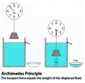 Archimedes principle states that whenever a body is partially or fully immersed in a fluid, it experiences an up thrust which is equal to weight of the liquid displaced. Thus effective weight is reduced. Effective weight is also termed as Apparent weight.